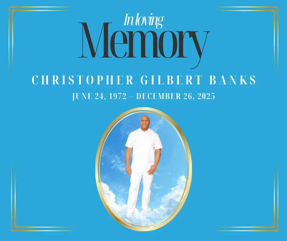 As Salaamu Alaikum! (Peace be unto you!) family & friends, we are saddened to report that Chris Banks, has returned to Allah (God). Chris spent his final hours with his two favorite girls, his loving wife & his beautiful daughter, before his unexpected transition. With hearts anchored in faith and remembrance of Allah, we plan to gather to honor the life of Chris. His homegoing services will be conducted in accordance with Islamic rites, reflecting simplicity, humility, and submission to Allah’s decree. There are no eulogies, formal speeches, or ceremonial displays. May Allah envelop Christopher in His mercy, forgive his shortcomings, and grant patience, comfort, and strength to all who mourn his passing.